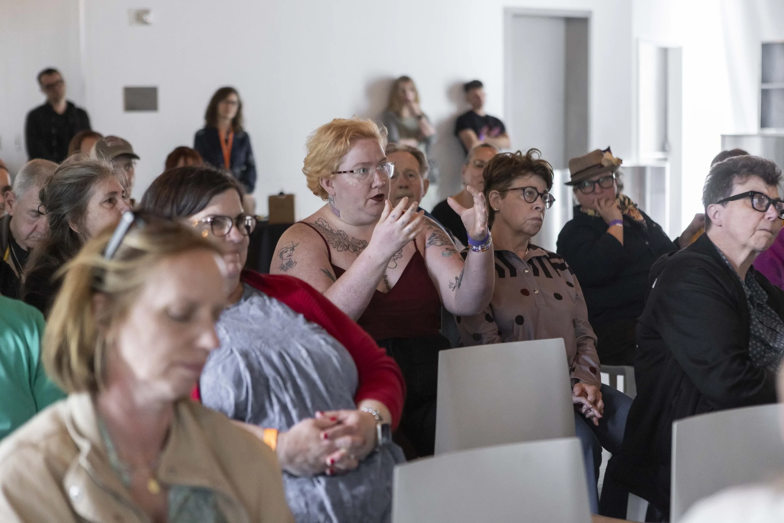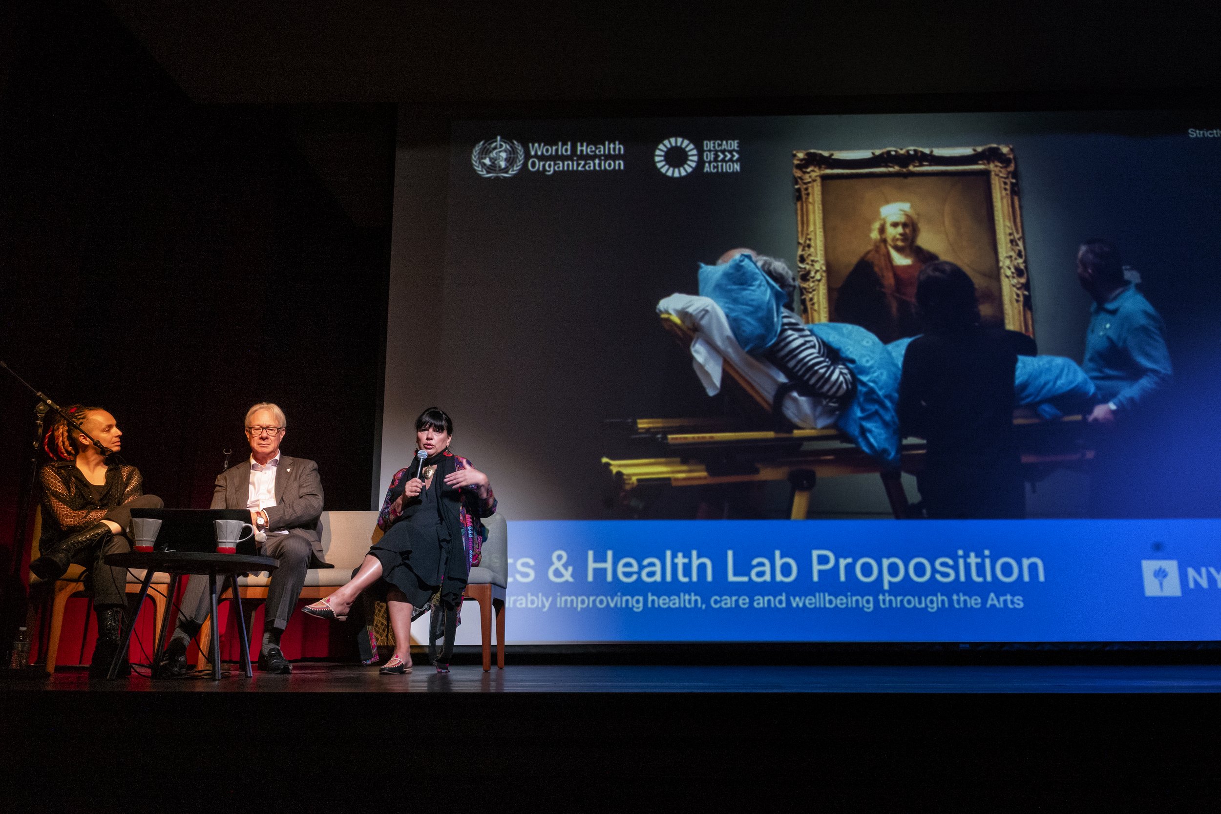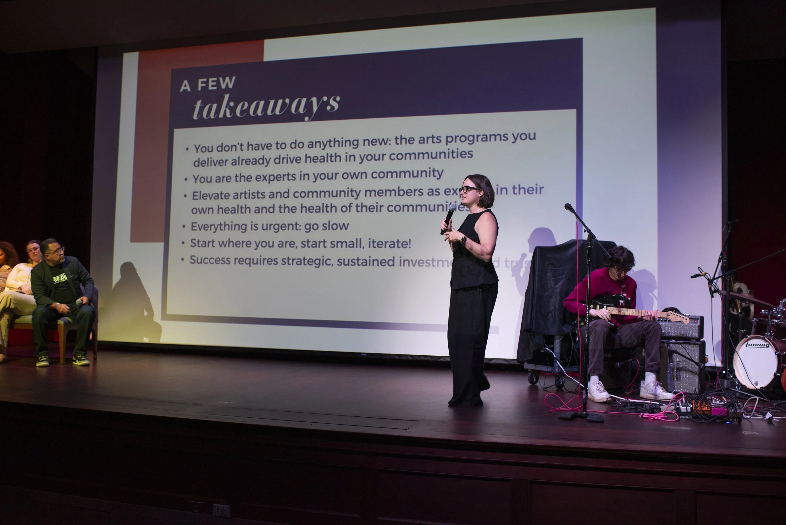 Alyson Maier-Lokuta (AVP, Arts and Wellbeing, New Jersey Performing Arts Center) discusses social prescribing at Making Waves: A Deep-Dive on Arts and Health—a series of workshops, a leadership lunch, and Arts Rx Live! multimedia showcase featuring industry innovators and performances | Organized by Art as Mentorship in partnership with The Nelson-Atkins Museum of Art, 2025. | Photo: © Scout Tufankjian