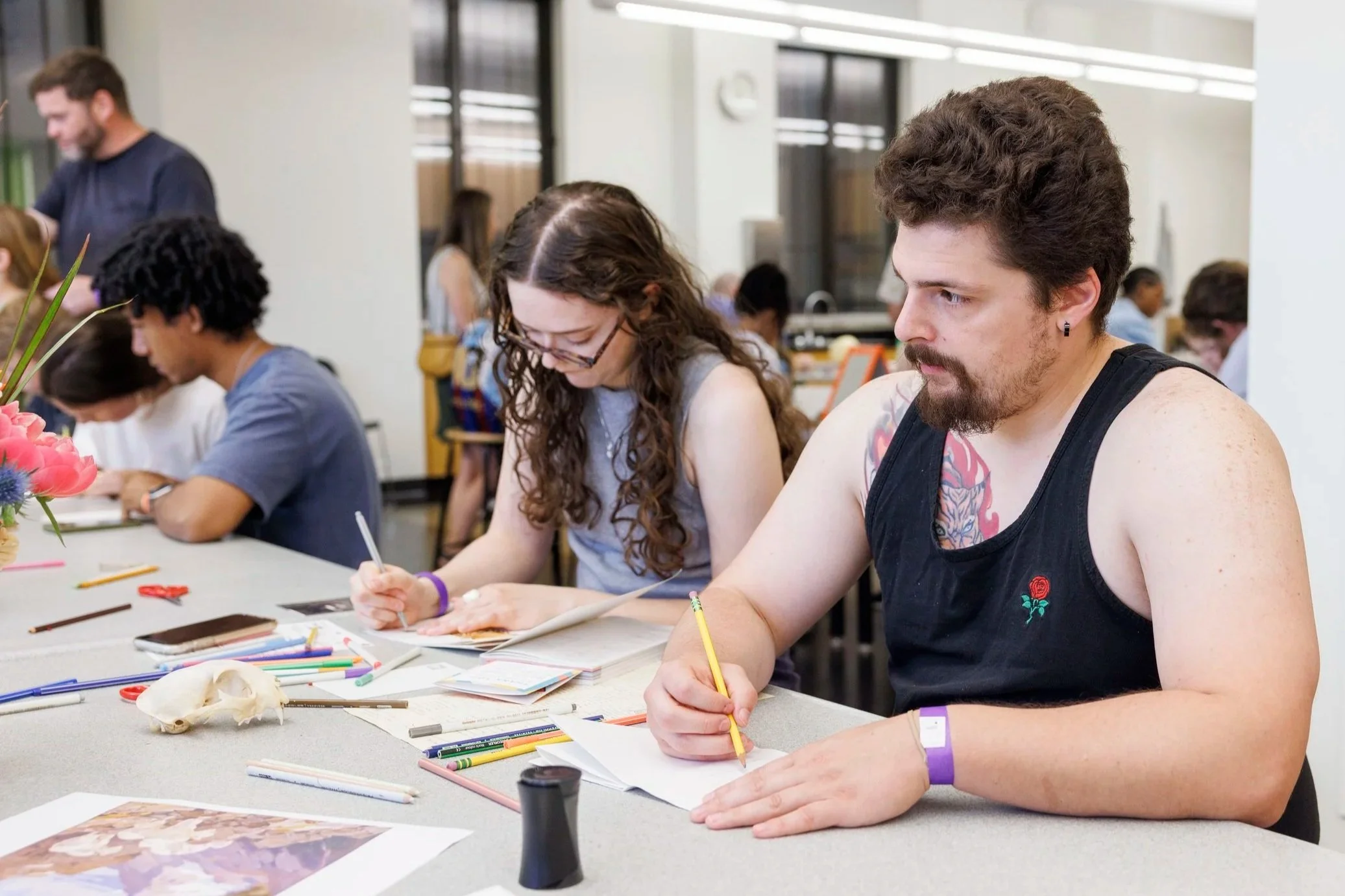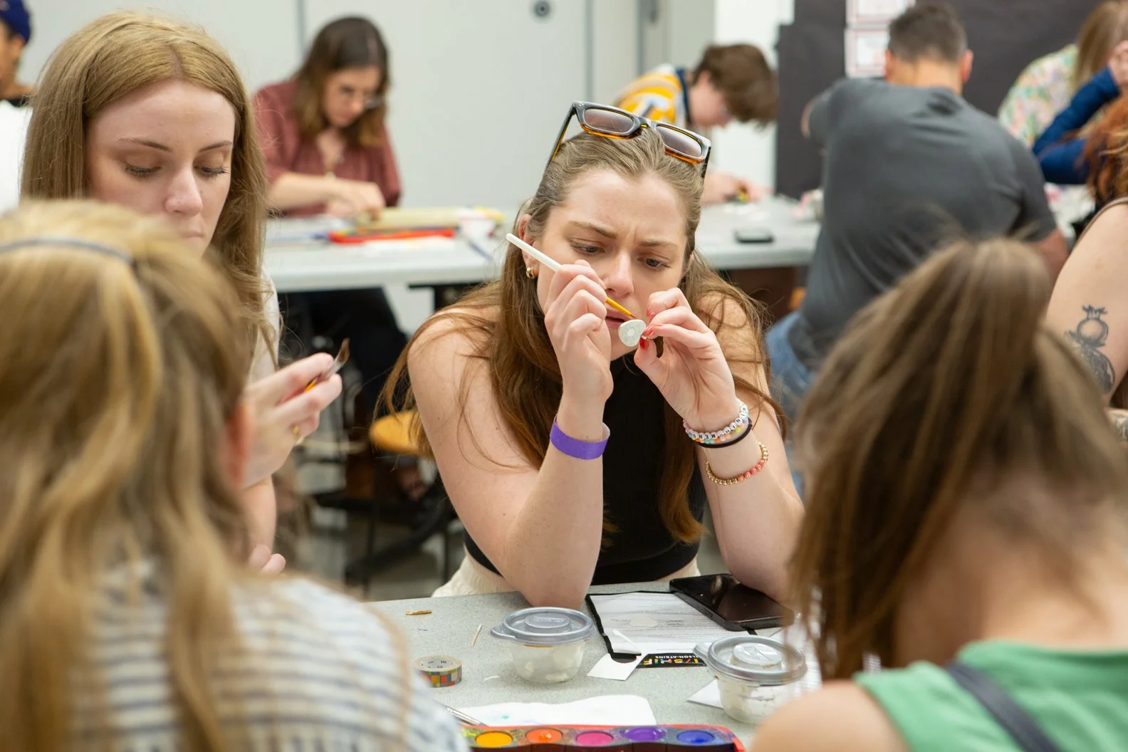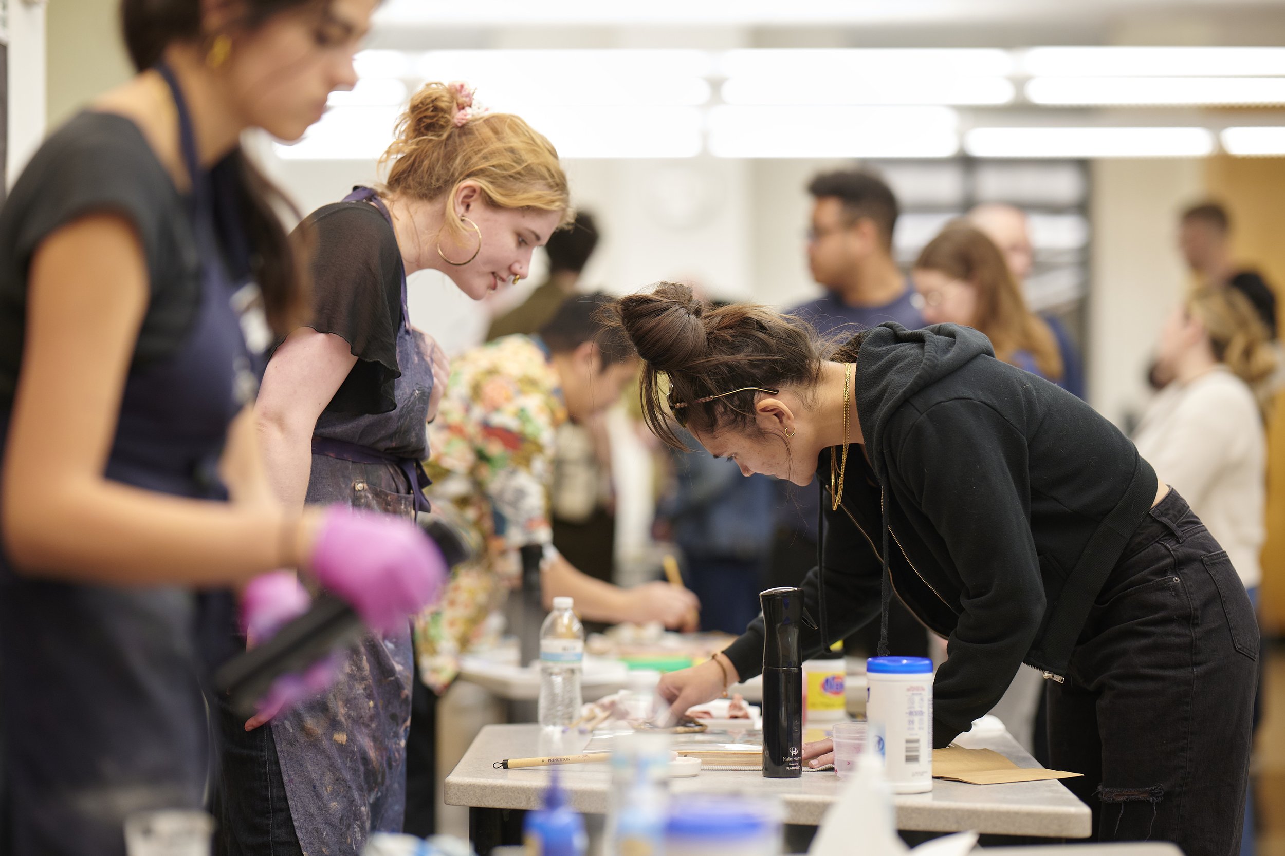 Guided by artist Emily Alvarez, guests create miniature portrait charms at the inaugural Night/Shift.