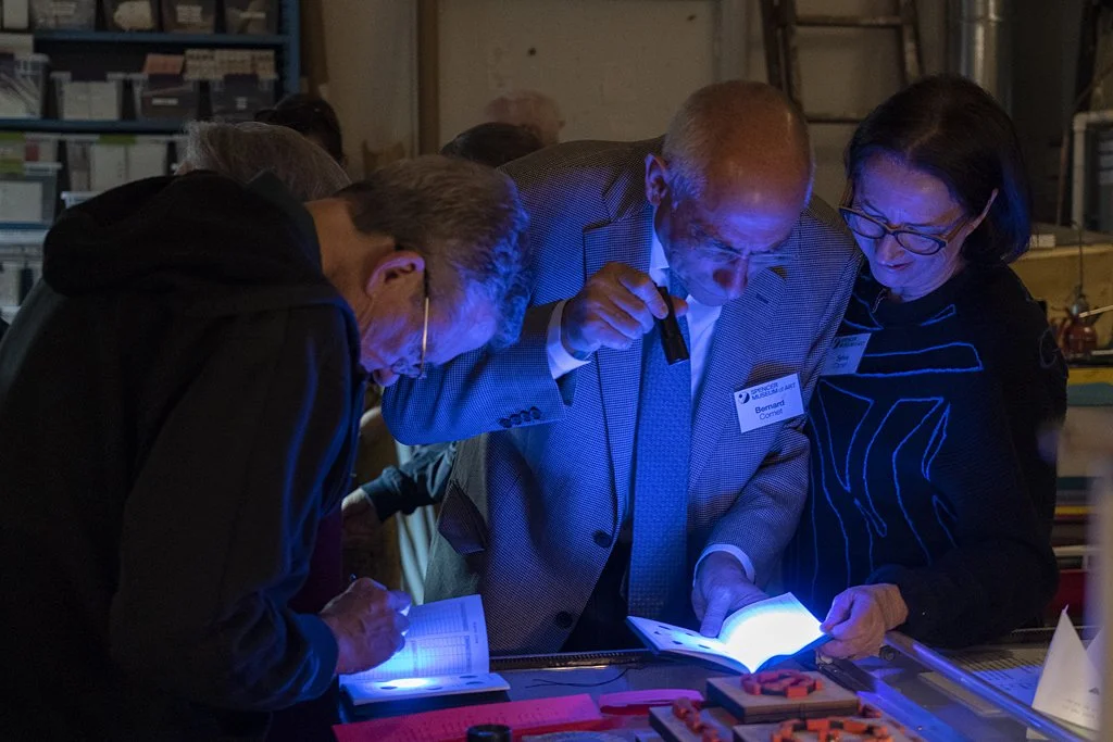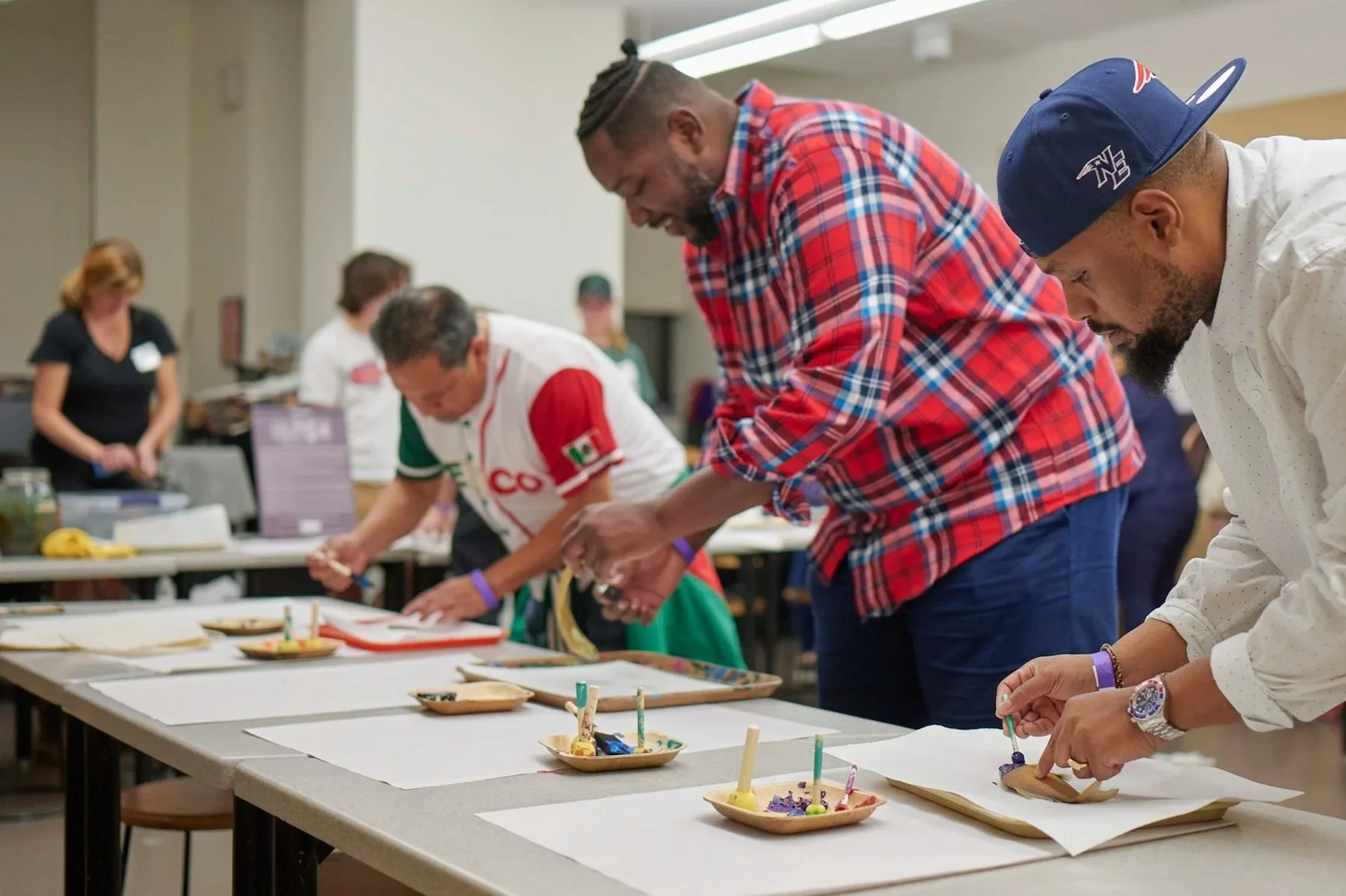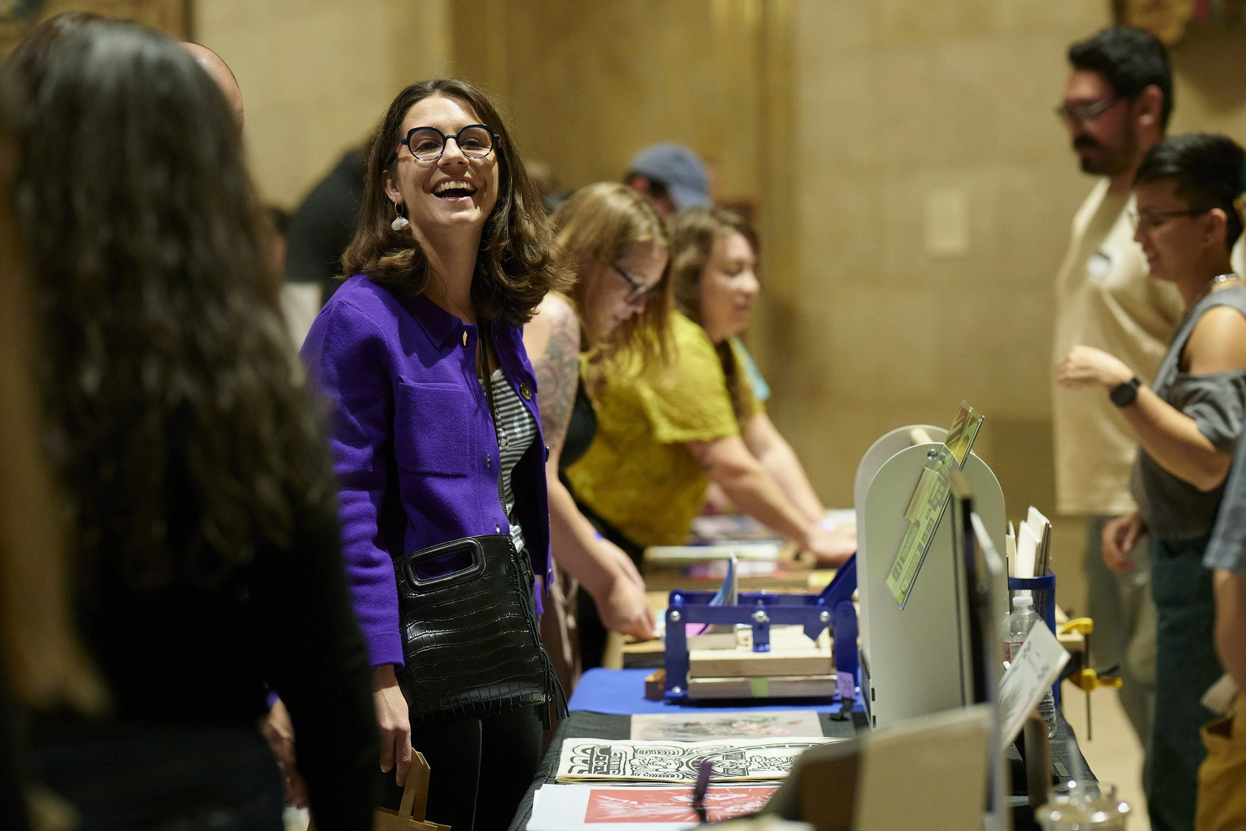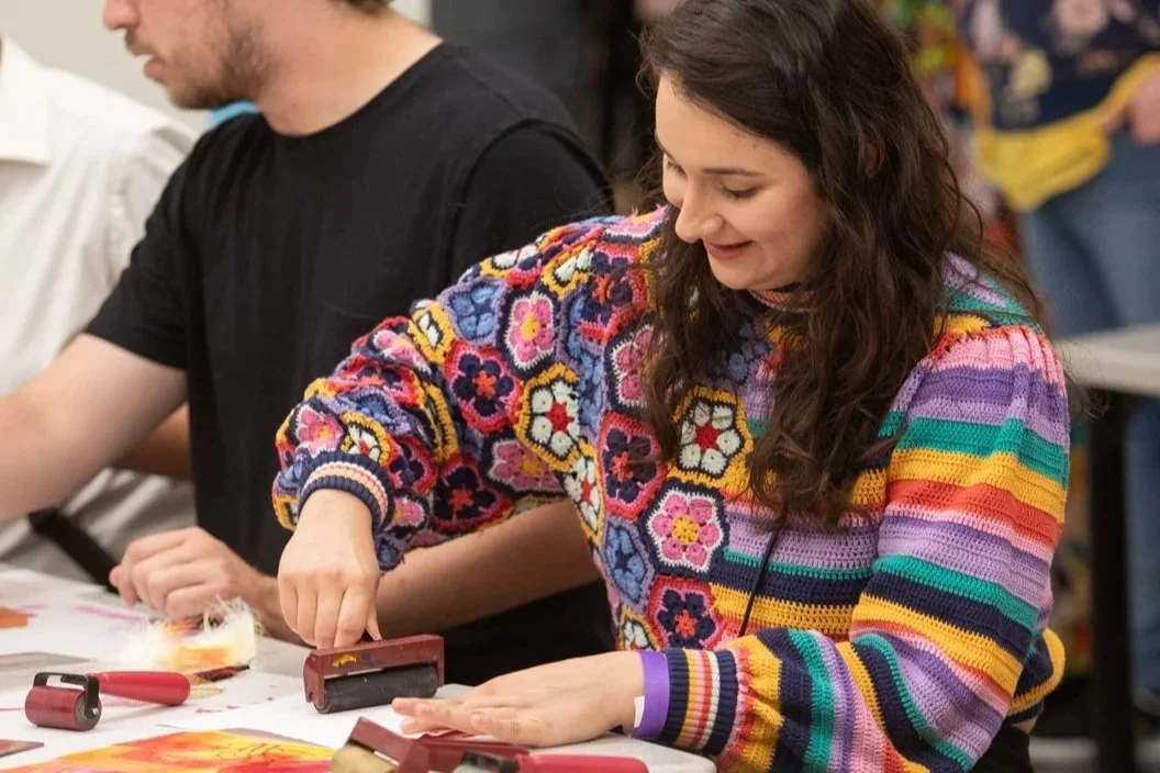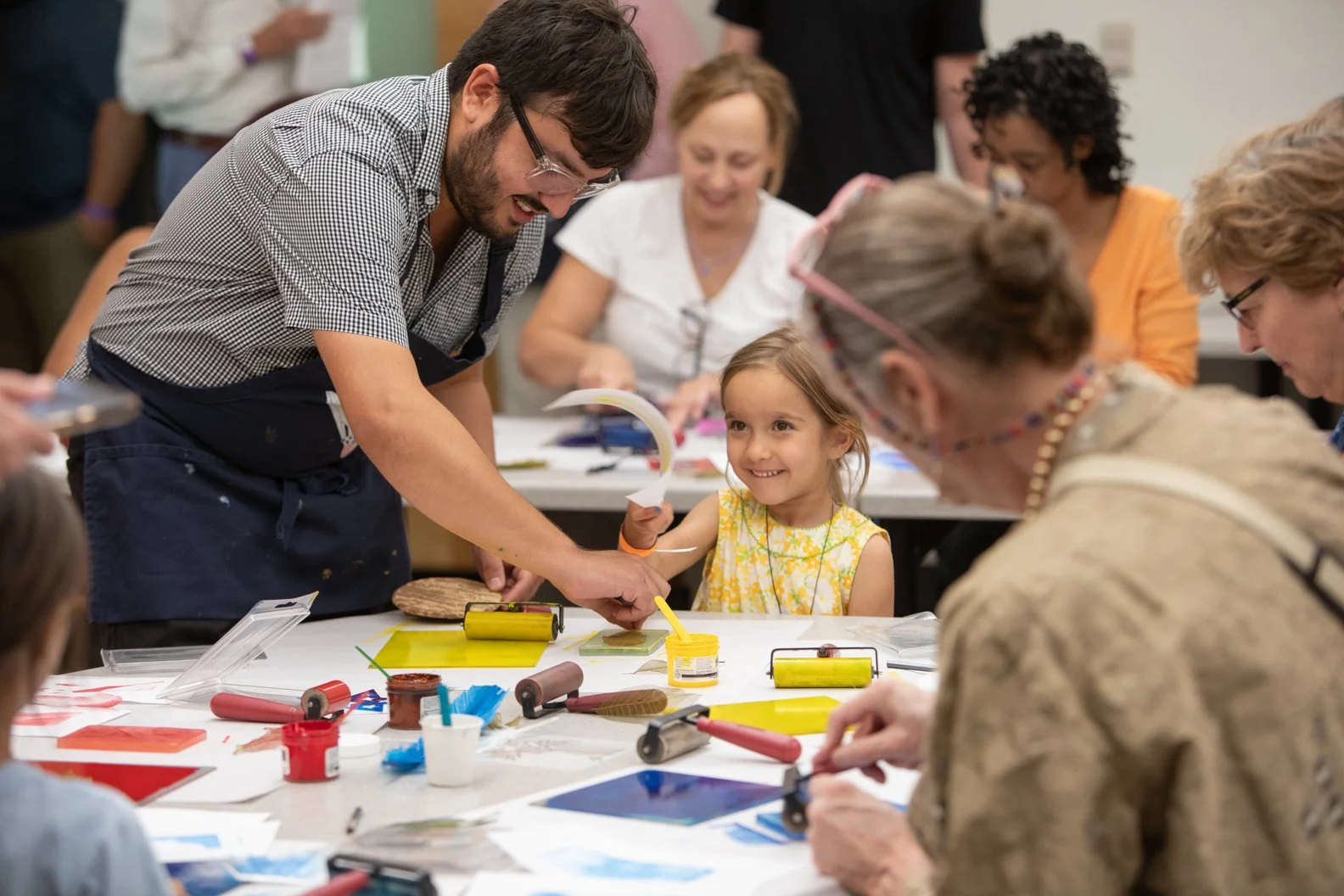 Guided by artist Carlos Ortiz-Gallo, guests experiment with gel printing at the inaugural Night/Shift.
