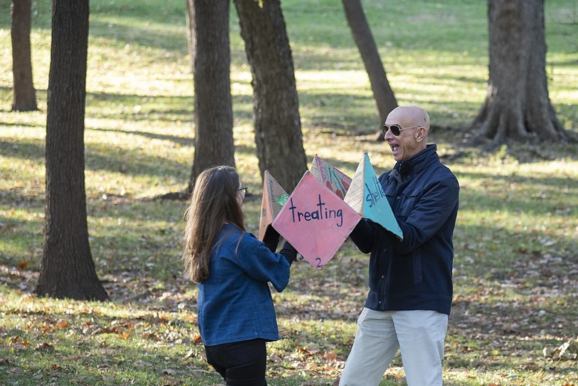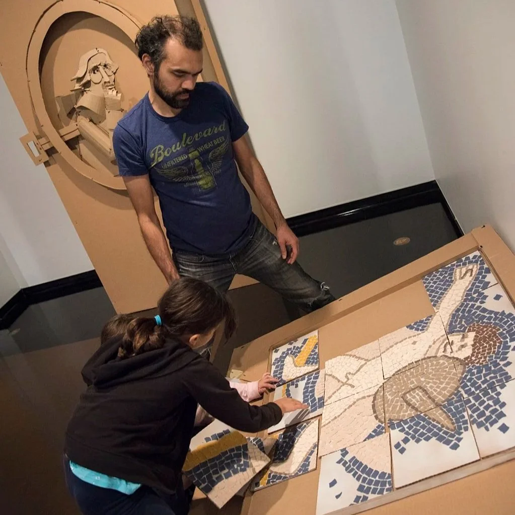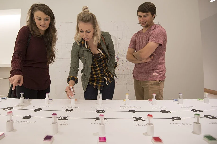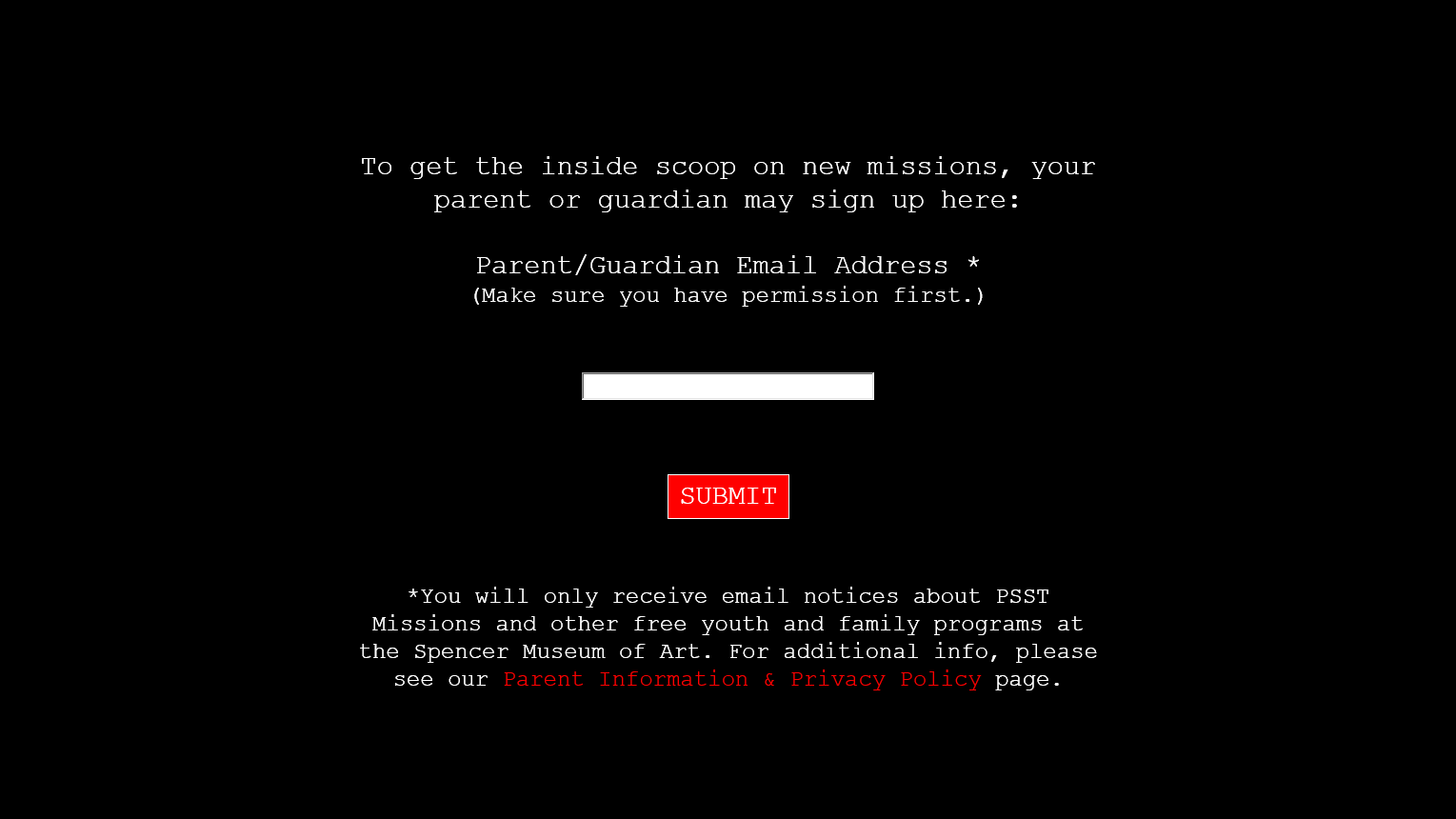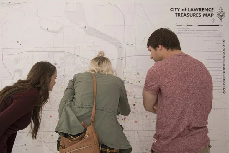 A series of top-secret missions to crack codes, wrestle with riddles, and solve the mysteries of art. Mission Dimension, pictured below, crisscrossed campus to explore four 3-dimensional works of art. Spencer Museum of Art, 2019-2021.