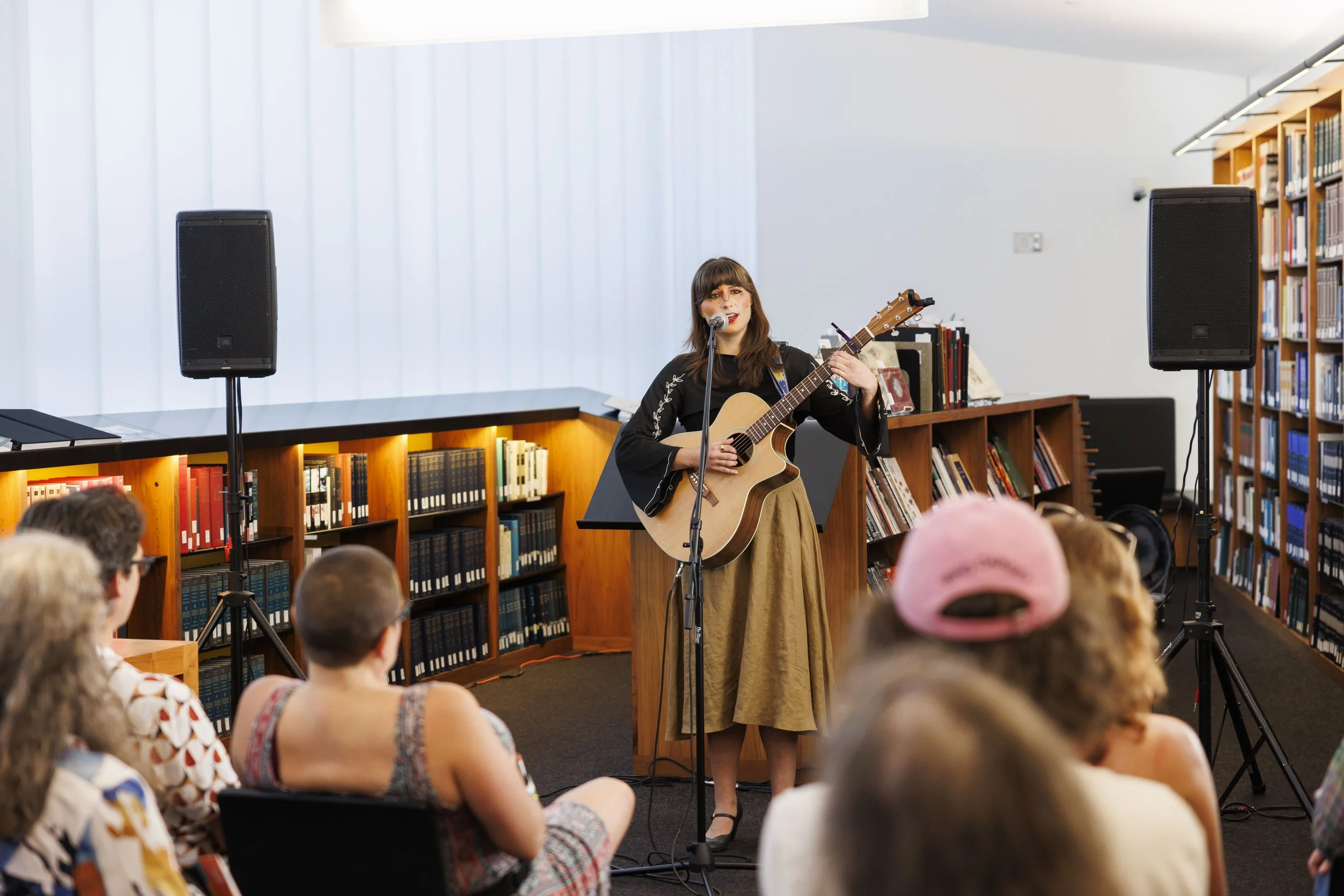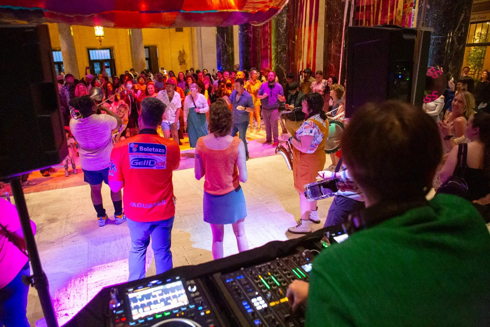 Enrique Chi, La Lulu, and the Rebel Song Academy Band perform at Making Waves: A Deep-Dive on Arts and Health—a series of workshops, a leadership lunch, and Arts Rx Live! multimedia showcase featuring industry innovators and performances | Organized by Art as Mentorship in partnership with The Nelson-Atkins Museum of Art, 2025. | Photo: © Scout Tufankjian