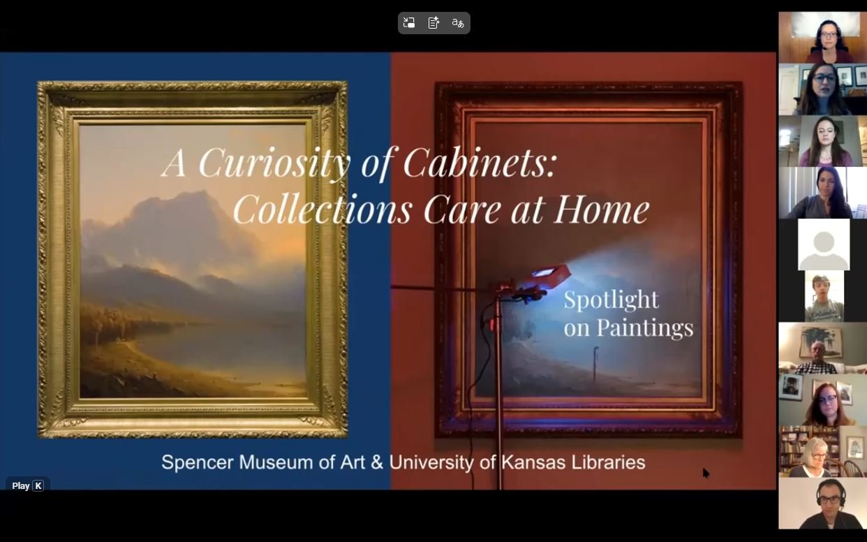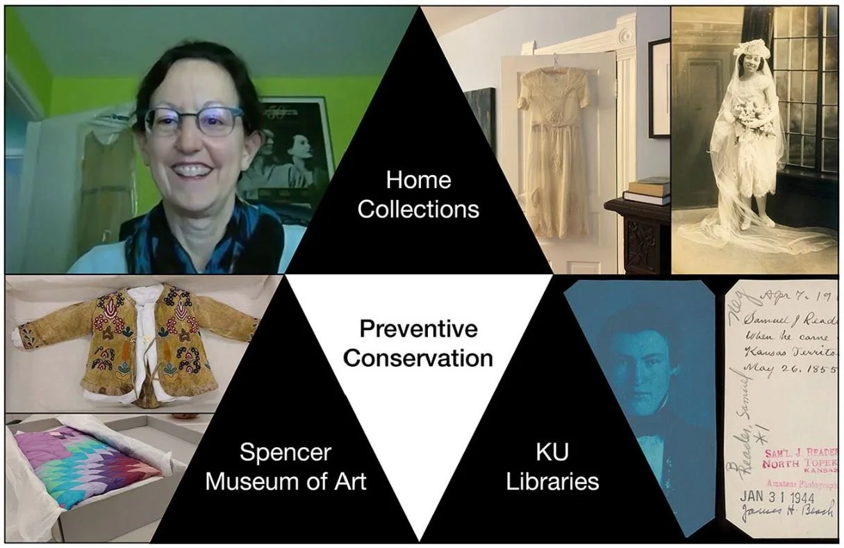 A virtual series on the power of preventive conservation and how to apply museum and library practices to personal treasures at home. Sessions included books, photographs, paper ephemera, quilts, clothing, paintings, and digital materials. Co-organized with Jacinta Johnson. Spencer Museum of Art and KU Libraries, 2020-2021.