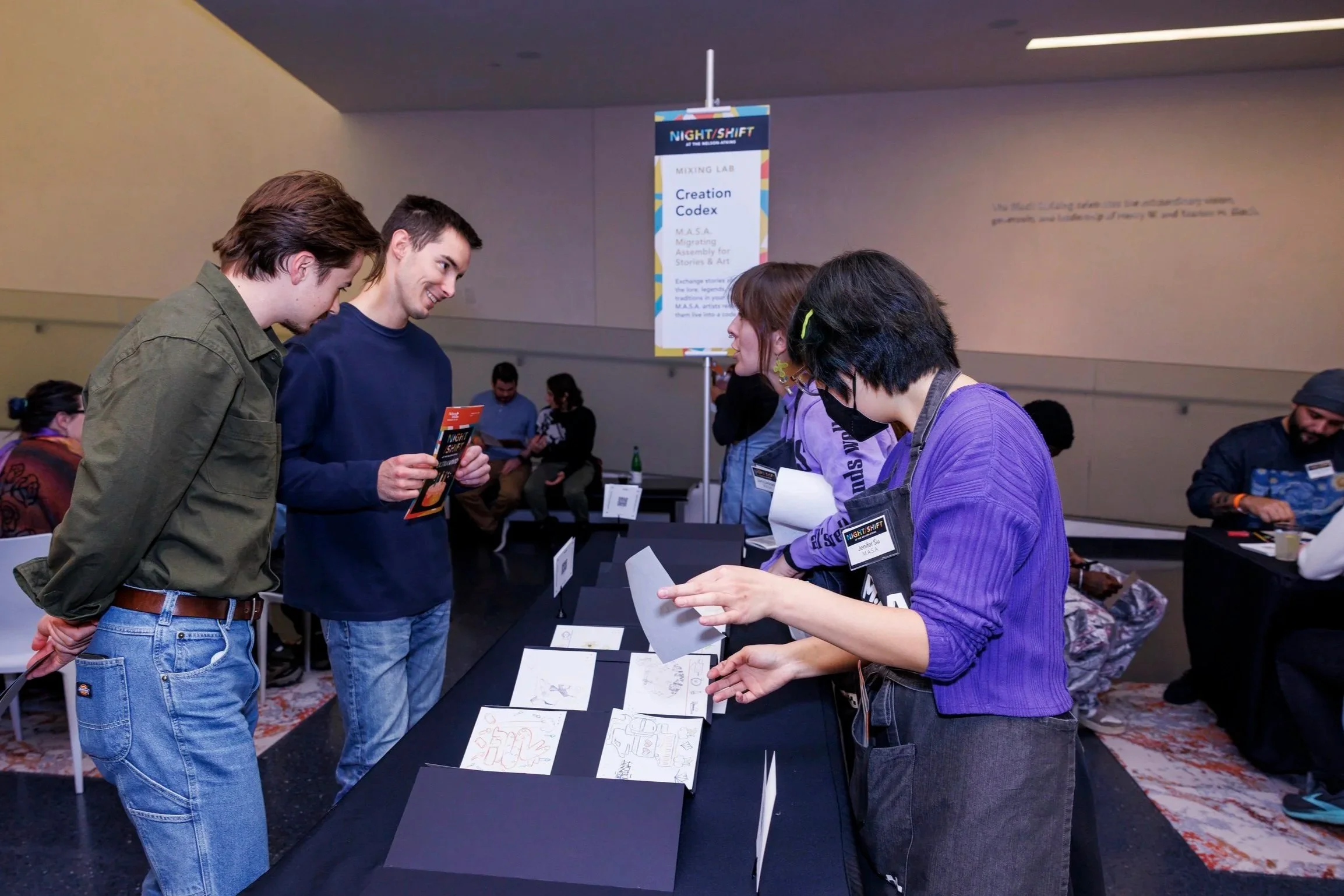 Night/Shift; UltraVivid | Mixing Lab hosted by M.A.S.A. (Migrating Assembly for Stories and Art) | Guests exchange stories about the lore, legends, and traditions in their lives as M.A.S.A. artists record them live into a codex, the ancient precursor to the modern book format.