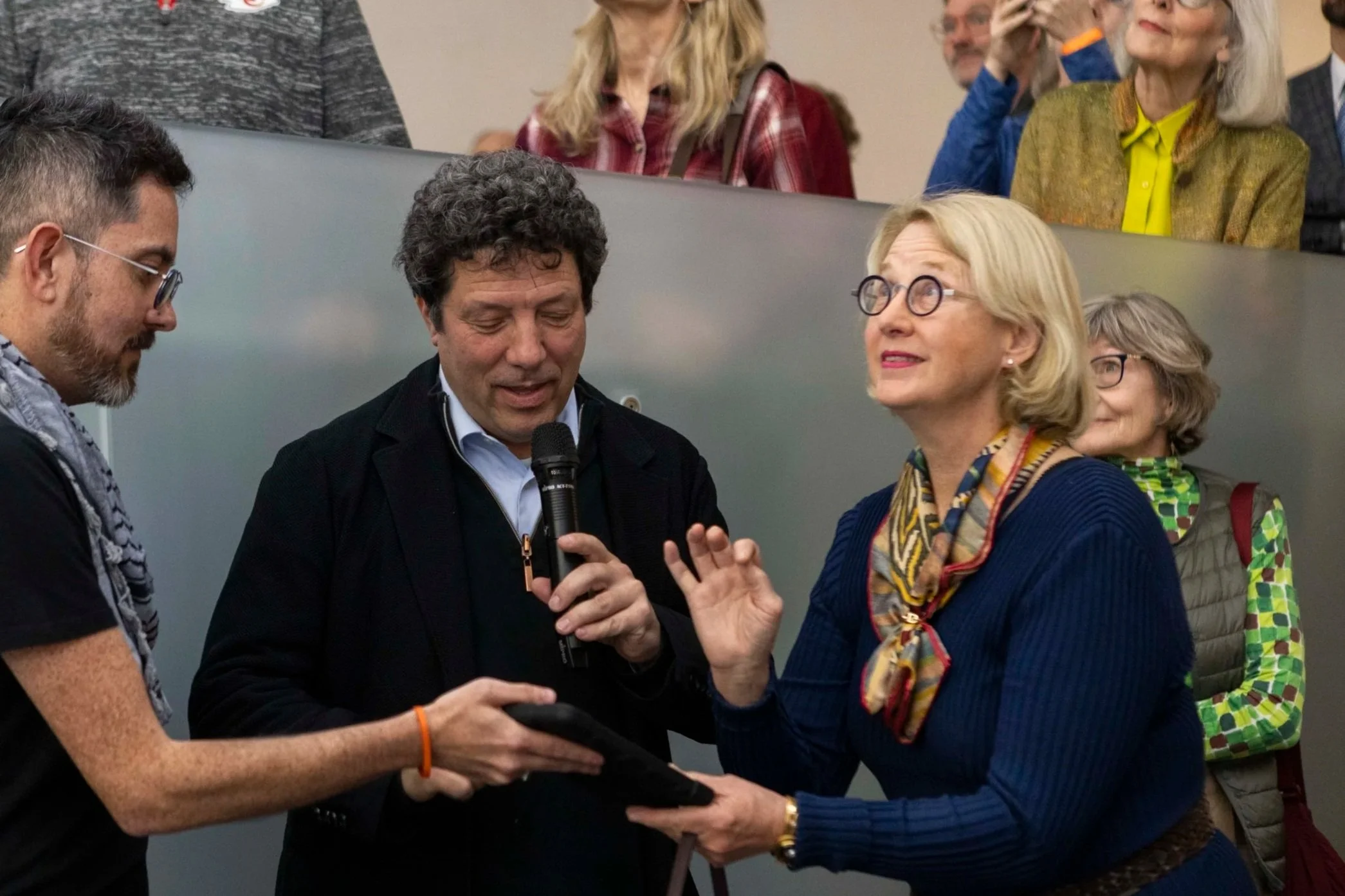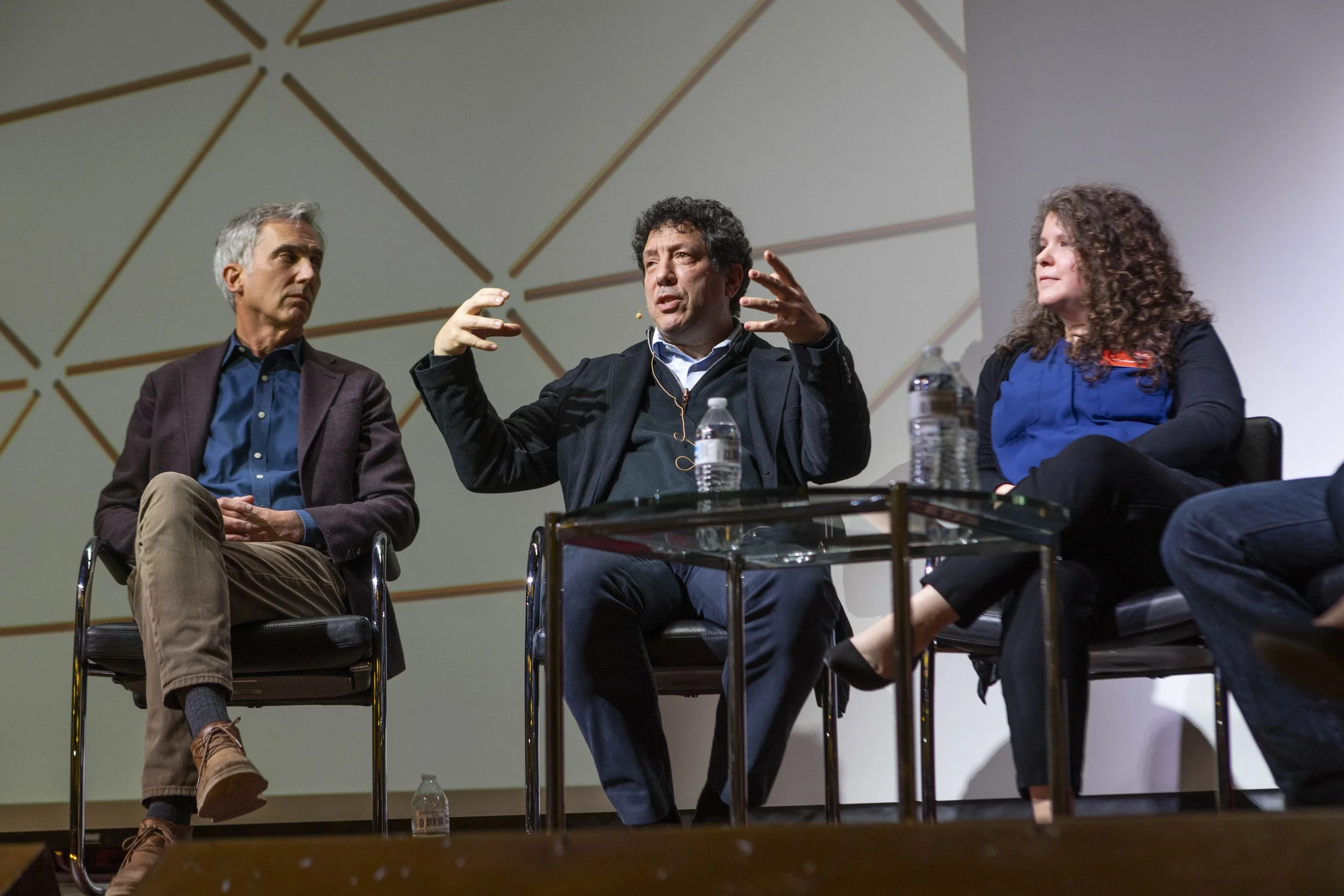 Enrique Chi, Julián Zugazagoitia, and Nathalie Bondil in conversation at Making Waves: A Deep-Dive on Arts and Health—a series of workshops, a leadership lunch, and Arts Rx Live! multimedia showcase featuring industry innovators and performances | Organized by Art as Mentorship in partnership with The Nelson-Atkins Museum of Art, 2025. | Photo: © Scout Tufankjian