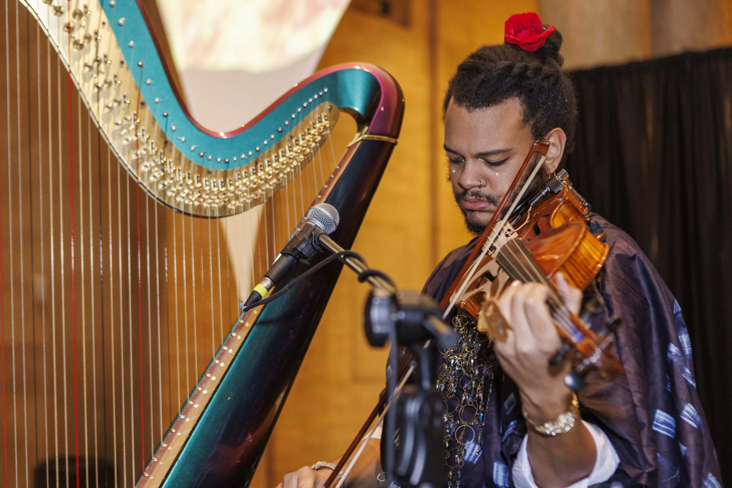 Night/Shift: Star-Crossed | Calvin Arsenia and Evan Tedlock combine harp, voice, violin, and generative animation, defying genres and gravity to explore an ever-expanding universe of sight and sound.