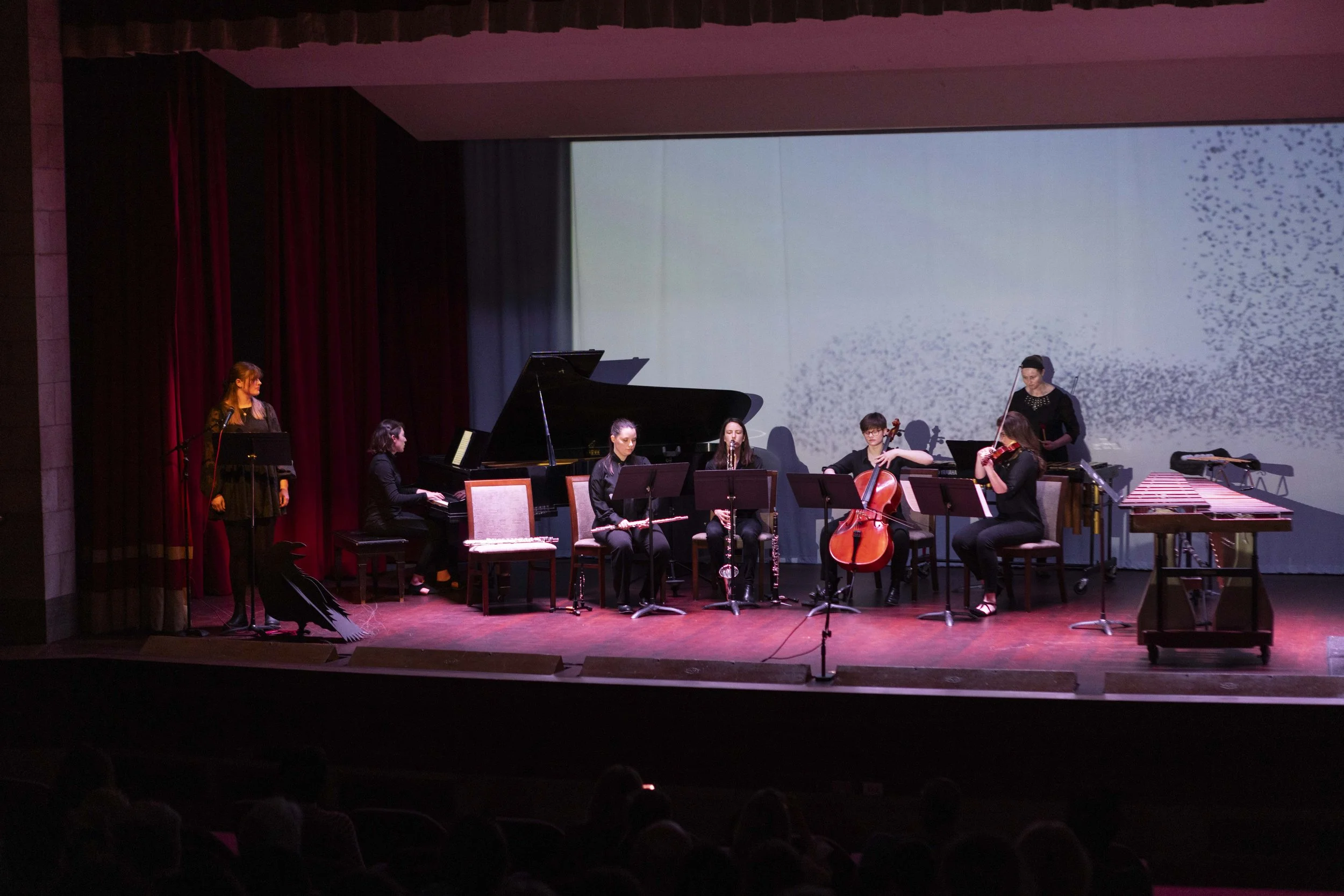 A concert featuring the premiere of Little Structures commissioned in conjunction with Wall Drawing 519 by Sol LeWitt. Kip Haaheim, composer. KU Percussion Studio, Ji Hye Jung, director. Spencer Museum of Art, 2014.