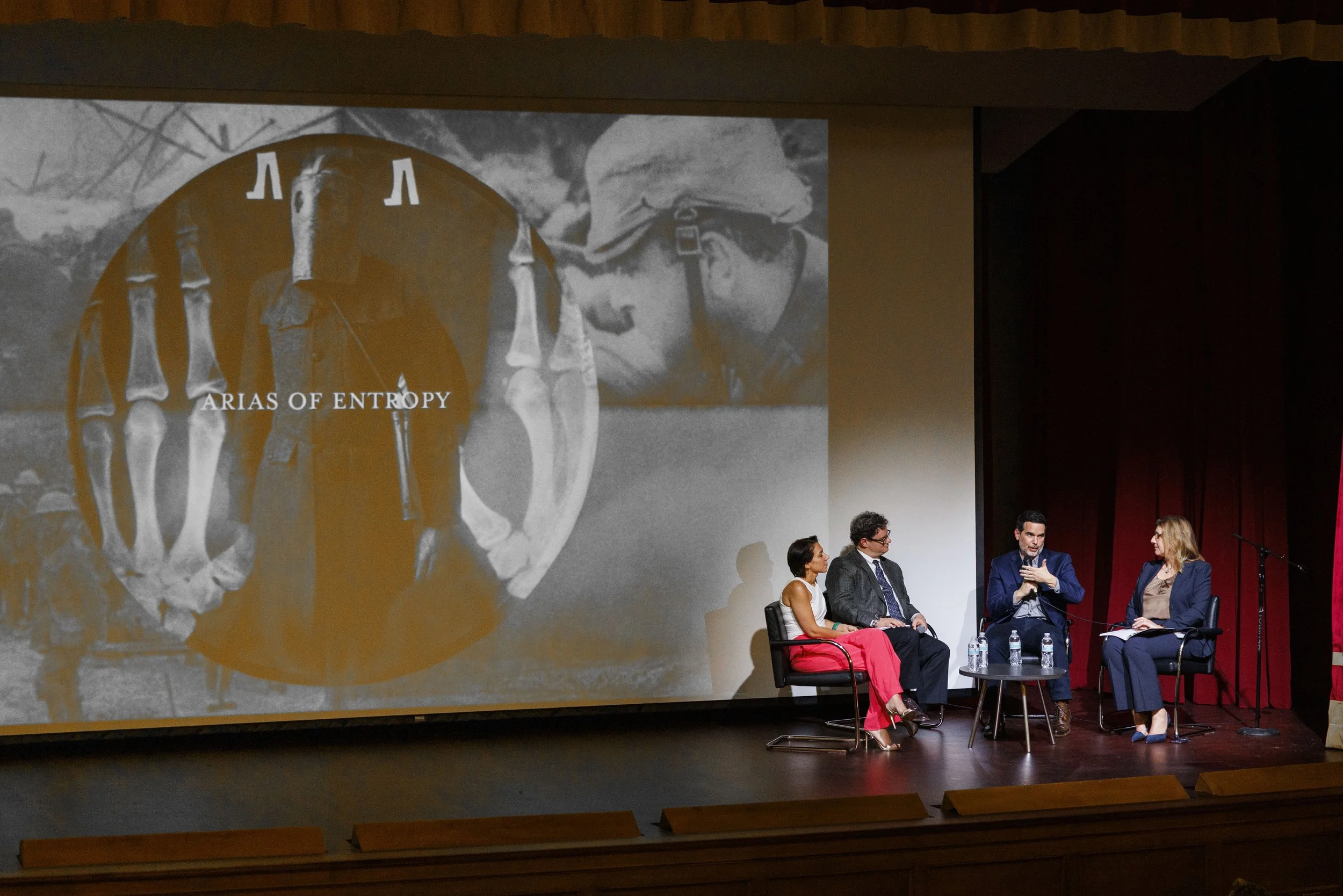 Ancient Beacons Long for Notice: Screening and Discussion on the backstory and legacy of NASA's Golden Record with filmmaker Dario Robleto (second from right), Patricia Cecil (National WWI Museum and Memorial), Jason Dean (Linda Hall Library), and Kimberly Masteller (Nelson-Atkins). Presented in conjunction with the exhibition Mapping the Heavens: Art, Astronomy, and Exchange between the Islamic Lands and Europe, 2025.